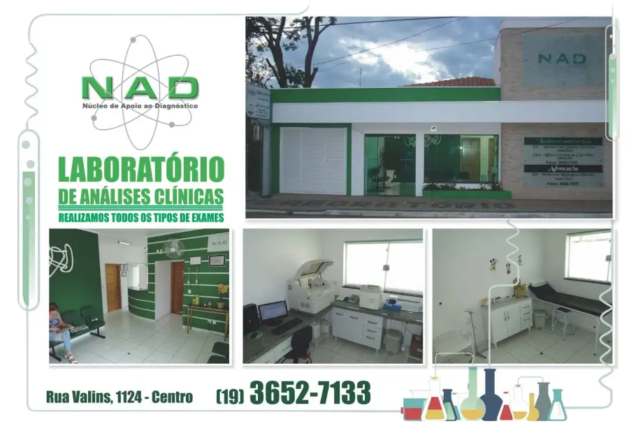 O Laboratório NAD – Núcleo de Apoio ao Diagnóstico iniciou suas atividades em Aguaí no dia 06 de janeiro de 2006, visando a excelência da qualidade na prestação de serviços em análises clínicas, bem como um atendimento diferenciado e individualizado aos seus clientes e parceiros da cidade e região.